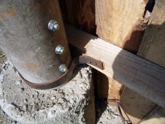 Важно е също така да се монтират носещите стълбове на необходимото разстояние с милиметрова точност. Дълбочината на отвора за тръбата трябва да бъде от 1 метър или повече, в зависимост от масата на конструкцията: колкото по -тежка е, толкова по -дълбока е дупката. Самата тръба трябва да бъде с дебели стени, в противен случай тя просто няма да издържи теглото на конструкцията и ще започне да се деформира под налягане. След фиксиране на тръбите те могат да бъдат бетонирани с течен разтвор в съотношение пясък, цимент и вода едно към три.