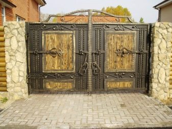 - Глухи. Този тип порта е комбинация от ажурно коване и вложки от други материали, които заедно осигуряват надеждна защита на зоната от любопитни очи..
