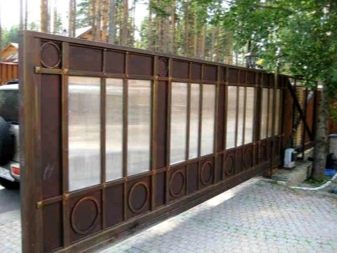 Структурите с дървени вложки изглеждат много елегантни и красиви и такива порти не само ще зарадват окото, но и ще служат като надеждна защита от любопитни очи..