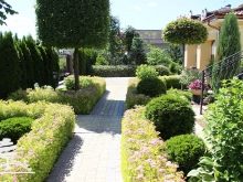 Различни храсти също ще украсят сайта. Това може да бъде изящна туя с различни форми и размери или ягодоплодни храсти. Някои видове храсти могат дори да се използват за създаване на зелен плет, който да замени скучните огради..