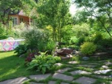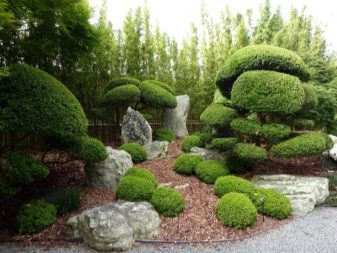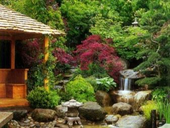 На сайт в японски стил пътеките са облицовани с чакъл или камъчета. Терасата може да бъде украсена с зидария или плочи, покрити с мъх. От зеленината също трябва да се опитате да вземете нещо подобно на тези растения, които се срещат в източните страни..