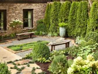 Оформлението на пространството на такъв двор до голяма степен зависи от вас самите и от вашите предпочитания и хобита. Някой иска да оборудва малка зеленчукова градина на тази територия, да я обгради с градина и да постави оранжерии и оранжерии зад къщата. И някой иска да отдели цялото свободно пространство за зона за отдих, където ще бъде приятно да се забавлявате с приятели или просто да се насладите на възможността да останете насаме с природата.
