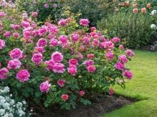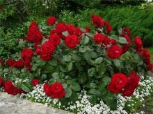 - Рози от полиантус. Тези храсти с малки цветя могат да растат до 50 см височина и често се използват за засаждане по пътеки, бордюри или тревни площи..