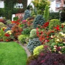 При създаването на цветни лехи могат да се използват не само цветя, но и храсти или дървета.