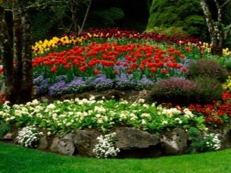 Ландшафтният дизайн на цветното легло под формата на алпинеум или алпинеум има оригинален вид. Схемата за създаване на алпинеума е в многоетажна структура. Изключително нискорастящи растения са подходящи за алпийска пързалка., и красив алпинеум може да бъде създаден с помощта на луковични, почвени покрития и многогодишни растения.