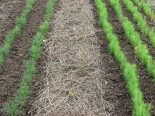 - Мулчиране. Разпределение на органичен материал около растенията под формата на хлабав слой.