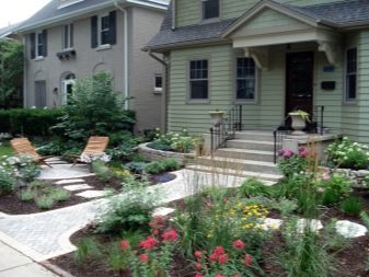 - миксбордери. Те нямат определена форма, могат да бъдат засадени с напълно различни растения. Те са засадени успоредно на пътеките на къщата. Единственото правило, което трябва да се спазва, е следното: високите цветя се засаждат по -далеч от пътеката, отколкото ниските. Това позволява по -пълен преглед на всички растения..