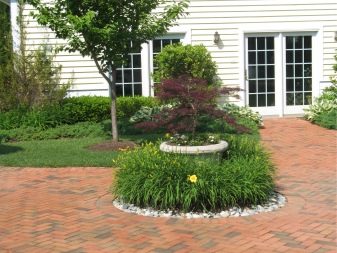 - Кръгови. Най -често тя е организирана около дървета или камъни, понякога около сгради или други възвишения в релефа. Растенията често се засаждат на случаен принцип, по -рядко се използва един вид цвете. Такова цветно легло не заема много място, но украсява сайта. Ако създадете такъв цветен кръг под всяко дърво, тогава зоната ще изглежда много цветна, сякаш украсена с мъниста..