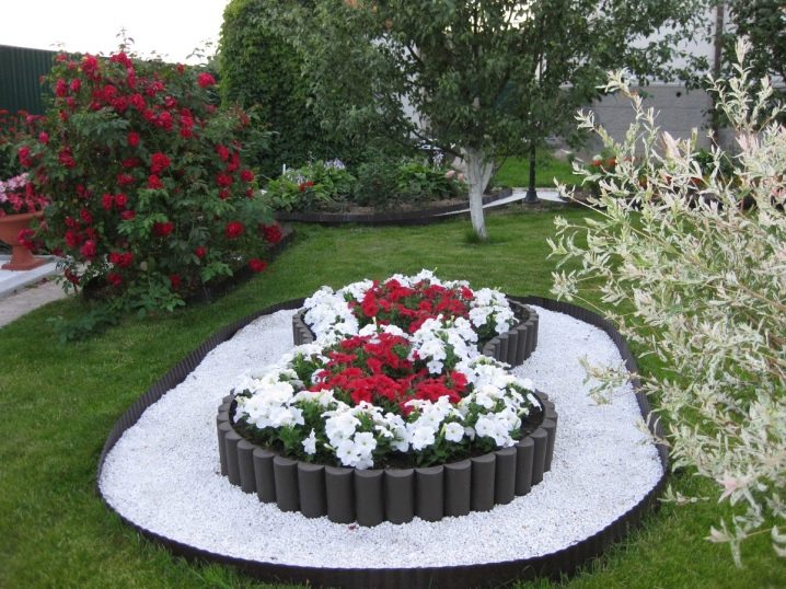 - отстъпки. Тази цветна градина е ивица цветя. Ширината обикновено е от 20 см до 1 м. За тази цветна градина се използват 1-2 вида цветя със същата височина. Най -често билата се правят по пътеки на една и съща височина;