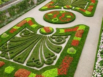 - Килим. Труден вариант за създаване, напомнящ за персийски килим. Използват се ниски цветя и треви, които могат да направят почвената покривка напълно невидима, като не оставят празнини. Обикновено се използват два контрастни цвята. Такива “килими” заемат голяма площ, като най -често имат правилната квадратна форма.