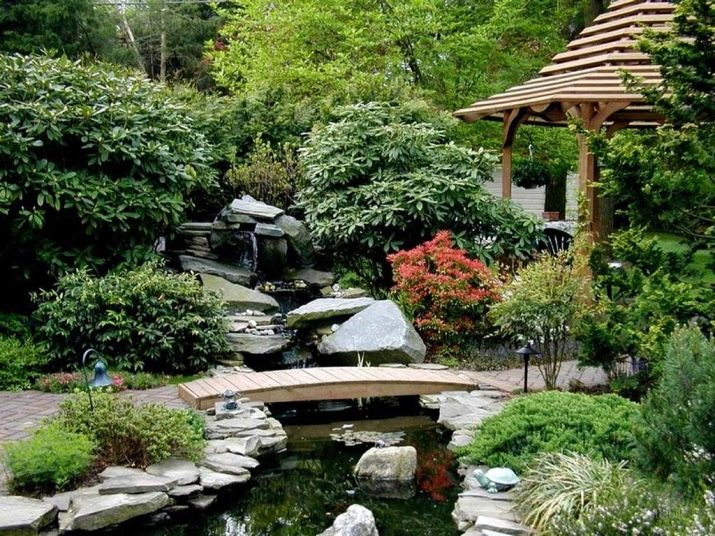 Ако поток бълбука тук или езерото е преляло, тогава повърхността е покрита с водни лилии, а отстрани не е облицована с равномерни редове камъни или тухли, а имитира полуразрушена стара зидария или укрепени камъни са изцяло вкопани в земята.