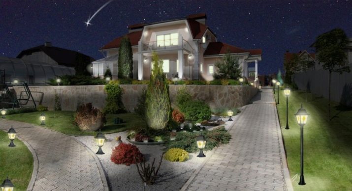 Не забравяйте за уличното осветление. – фенерите трябва да стоят както по пътеките, така и на верандата, и отстрани на беседките. Тяхното местоположение трябва да бъде обмислено преди началото на озеленяването, тъй като освен самия стълб, първо трябва да изкопаете изкоп, за да доставите електричество.