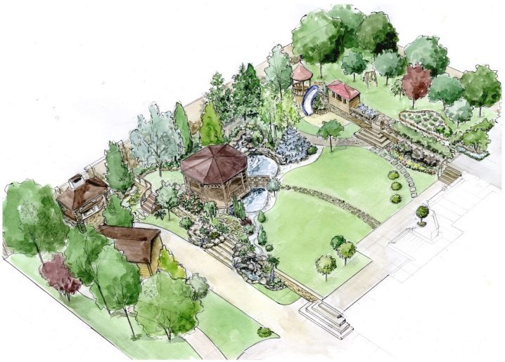 Всеки дизайн, включително ландшафтен дизайн, започва с подробно проучване на плана и скицата на градината, където всеки обект и мястото, където ще бъдат свързани комуникациите, ще бъдат маркирани. Относително казано, скица е квадрат или правоъгълник, чиито страни са границите на оградата на обекта..