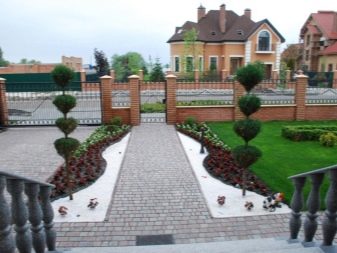 Това е участъкът от входа на къщата до плъзгащата се порта. Това всъщност е лицето на къщата и лицето на собствениците, така че най -често мястото е декорирано в строг класически стил. Стандартните тухли и камък със сдържани цветове се използват като материали за облицовка на архитектурни обекти и настилки..