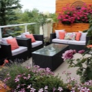 Що се отнася до самите цветя, също е по -добре да засадите минимално количество от тях тук, защото колите са паркирани наблизо, отделяйки отработени газове, а самите гости не могат да се сдържат и да вземат куп от тях в очакване на барбекю.
