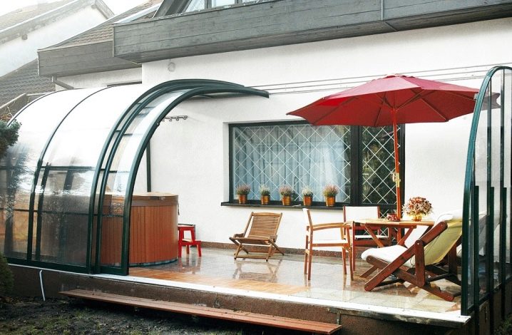 Ако го остъклите и поставите декоративен бръшлян или растения като него върху покрива и стените, тогава не можете да изградите беседка отделно и да спестите място.