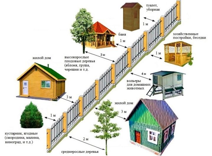 - Всяка сграда не трябва да е на по-близо 1-2 м от оградата, въпреки че малко хора спазват това правило. Понякога стената на къщата просто се слива с оградата на съседа, което не само им пречи по отношение на звукоизолацията, но може да бъде просто опасно. Така че, ако в резултат на потъване на почвата къщата започне да се премества настрани или да се срути, това ще навреди на чужда територия. Същото правило важи и за засаждането на големи храсти и дървета близо до оградата, защото те могат да растат и просто да счупят оградата или да попаднат в градината на някой друг, блокирайки засаждането от слънцето.