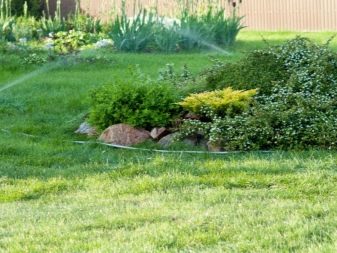 Първото нещо, което започва процеса на засаждане на растения, е тревата. Необходимо е също така да го изберете не само в зависимост от времето, но и от функционалното му предназначение.. Най-популярният вариант е така наречената битова поляна за отдих.. Той е непретенциозен в експлоатация, покълва добре дори в лоша почва и при ниски температури, а също така не провисва при такива натоварвания като деца, които играят или възрастни, които пекат кебап на скара..