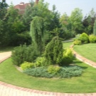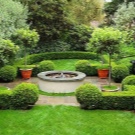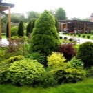 - Различни насаждения, както под формата на големи дървета, така и в комбинация от храсти, цветя и други форми на зелена флора. Естествено, зеленчукови храсти и овощни дървета така или иначе растат на всяко градинско легло, но ландшафтният дизайн не свършва дотук. Дърветата трябва да растат в градината, които не носят ползи под формата на плодове, но допълват естетическия компонент на зоната за отдих, създават сянка като от беседка или служат като опора за маса или хижа.