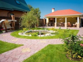 Така че, по -добре е да оставите поле с картофи зад къщата и да не оборудвате фонтан или барбекю близо до него. Но овощните дървета или храстите от цариградско грозде могат успешно да се впишат в зоната с беседки, давайки сянка и като допълнителен декоративен елемент.