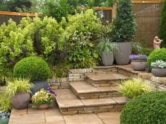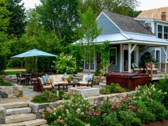 Ако правилно разбирате основите на планирането на хълмист терен, тогава този недостатък може да се превърне в предимство и ваш собствен уникален дизайнерски проект. На хълмовете можете да построите така наречените висящи градини, водопад на много нива или цветна арка и стълбище, слизащо от него към къщата..