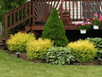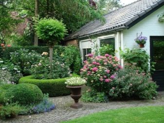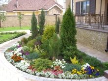 Най -оптималното разположение на цветни лехи е на входа и е по -добре да се използва асиметрия.