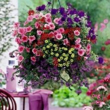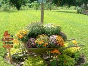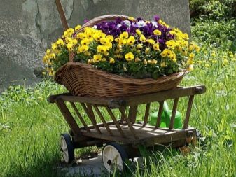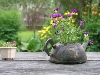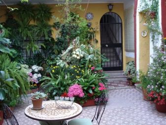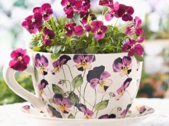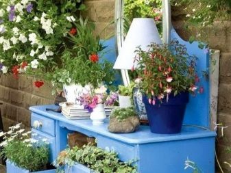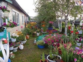Понякога цветята не се засаждат в земята, а се поставят в саксии, саксии, саксии, придържайки се към общия стил на дизайн.