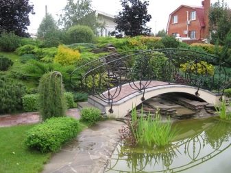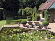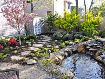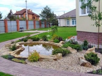 Нека разгледаме някои опции, които са лесни за пресъздаване със собствените си ръце. От дома до мястото за почивка поставете пътека от тухли или павета. Тя ще ви отведе до малко езерце, което е осветено от декоративни фенери, разположени наблизо. Наблизо расте син смърч, а малко по-далеч от него има две малки туи от нискорастящи сортове. Езерцето е облицовано с облицовани камъчета.