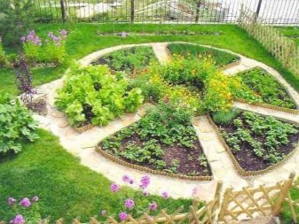 Представете си колко забавно ще изглеждат триъгълни легла с моркови, а до тях квадратни легла със зеле, ако имат подходяща ограда, а до тях има красиви пътеки и няколко сладки фигурки на животни. Цветя могат да бъдат засадени по краищата на леглата за красота. Градинските огради могат да заменят жив плет. Благодарение на този дизайн може да се постигне интересен ефект..