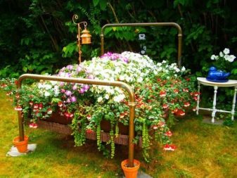 Можете да монтирате две метални арки една срещу друга. И поставете красиви саксии с цветя върху тях. Добавете там не само тези, които цъфтят в различни цветове, но и къдрави. Когато всичко започне да цъфти и да расте, ще бъдете доволни от резултатите от работата си..