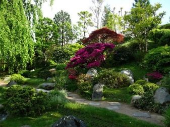 - V Японски стил, основният елемент на дизайна ще бъдат камъни и езерце. Клонове и всякакви дървета са подходящи. Но във всичко трябва да има сдържаност и изтънченост. Няма бунт от цветове.