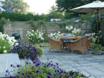 Най -простият е правоъгълен. Лесно се разделя на зони, които можете да подредите по свое усмотрение. Ако имате 4 декара, тогава е подходящо да подредите цветни лехи с различни цветя до къщата. Кралицата на градината е метличната хортензия. Нежните му цветя ще озарят всяка градина, тя цъфти красиво и се оформя лесно. Украсете интериора на тераса или веранда според вашите предпочитания.