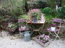 Материалът за цветните лехи са стари скринове, колички, вани, гуми. С нов поглед към старите неща всичко може да влезе в действие и да изглежда много красиво..