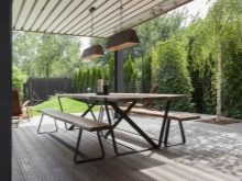 Можете да направите трапезария на открито. Нека пътеката води от къщата до нея. Чудесно е, ако наблизо има разпръснати дървета. Ако не, струва си да помислите за подслон в случай на дъжд. Трапезарията също ще изглежда добре в беседката, която ще стане част от интериора..