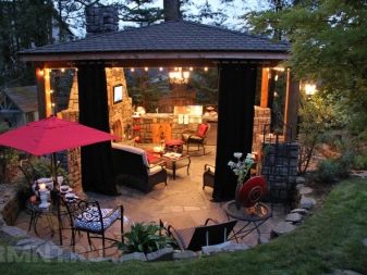 На територията на селска къща е задължително да се оборудва зона за отдих с барбекю или дори огнище. Можете да направите зона директно на открито. Но ще бъде още по -удобно под навес, особено при дъжд. И е хубаво да се скриеш от слънцето на хладно. Чудесно е, ако наблизо има водно тяло. В близост може да се разположи и детска площадка..
