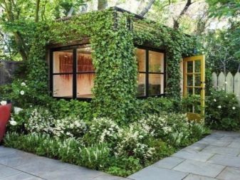 Високите огради от бетон и тухли също са неуспешен вариант за лятна резиденция. Това визуално ще намали площта и ще създаде усещане за затворено пространство. Оградата, направена от ограда или мрежа от катерещи растения, е най -добрият вариант.