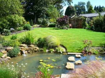 В градината, освен дървета и цветя, е препоръчително да поставите алпийска пързалка, алпинеум, езерце. Това ще добави вкус към вашия сайт. Водното тяло не трябва да удивлява въображението, да бъде под формата на водопад или кипяща река. Дори малък поток или езерце ще изпълни душата ви с хармония и ще ви развесели, когато решите да се отпуснете на село и да се насладите на тишина и спокойствие.