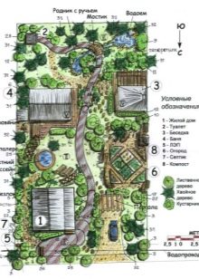 Изготвянето на план с всички подробности трябва да бъде първата стъпка към регистрирането на сайт. Това може да стане с помощта на специални компютърни програми или да се възпроизведе на хартия с обозначението на всички сгради, цветни лехи, пътеки, резервоар, зеленчукова градина, зона за отдих, местоположението на градински фигурки и фигурки, ако има такива..