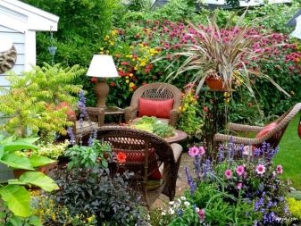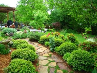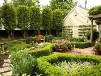 За да не превърнете територията в куп несъвместими декоративни елементи, по -добре е да се откажете от инсталирането на скулптури и фонтани, големи дървета и храсти, градински култури с голям диаметър на пъпките, многоцветни в дизайна на цветни лехи (не повече от 2 нюанса).