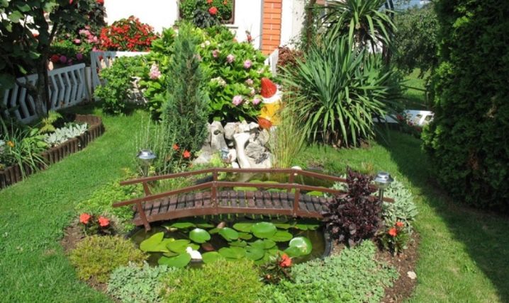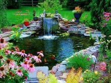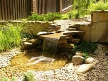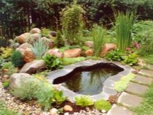 Малко езерце, разположено в централната част на обекта, ще помогне да се симулира див пейзаж в градината.. Не се препоръчва затварянето на резервоара с големи камъни, тъй като площта му визуално ще се стесни. Стъпаловиден водопад, кладенец или „сух“ поток ще помогнат за визуално увеличаване на градинското пространство. Пълзящите и влаголюбиви цветя, поставени около езерото, ще се превърнат в изразителен акцент..