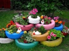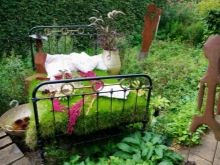 Като декоративни елементи за градината можете да използвате стари неща, творчески преосмислени: автомобилни гуми, стари мебели, стенни текстилни и пластмасови „джобове“, рафтове с рафтове. Всичко това може да се превърне в цветни лехи. Такива легла могат да се използват не само за цветни лехи, те са идеални за отглеждане на зеленчуци: рукола, киселец, маруля, магданоз, копър, спанак, ягоди.