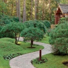 - Иглолистни дървета – най -популярният вид ландшафтна растителност. Те не изискват специални грижи и са зелени през цялата година. Борът обича пясъчника, смърчът може да расте на блатисти почви, тези характеристики трябва да се вземат предвид при засаждането им в различни райони. Тисът не изисква подрязване и образува добри ниски живи плетове.