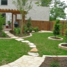 - Тревна площ – трудно е да си представим уютен двор без него. В големи площи на тревата се дава много място – пред къщата и за поддържане на фона около пъстрите цветни лехи. В близост до беседки, пейки, фонтани зеленото на тревата изглежда много по -хубаво и свежо от голата земя.