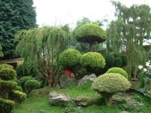 Обикновено се използват дървета от 1 до 7 метра; вариации с растения с различна височина изглеждат ефектни. За правилното визуално възприятие на по -високите дървета се присвоява фон, ниският посадъчен материал се поставя по -близо. Съзерцанието на сайта започва с портата. Дърветата могат да растат поединично или да образуват декоративни групи.
