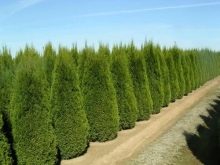 - Туя. Любимо растение от мнозина. Изглежда страхотно в композиции с всякакви дървета и храсти, може да бъде основният компонент в концепцията за дизайн. Образува добре ограда.