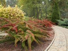 - Берберис. Весел храст с променяща се цветова схема по време на сезонни промени.