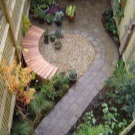 За да се отклони вниманието от удължената, стеснена форма на такъв участък, е необходимо да се постави върху него не права дрошка, а да им се придаде къдрав вид, като се оформят с перголи или арки от пластмаса. Ако на такава площадка има градина, тогава част от нейната площ може да бъде запълнена с високи дървета. Това ще създаде образ за продължаване на територията. Когато планирате легла със зеленчуци, можете да ги подредите в кръг или змия вместо по обичайната схема. Заоблените, дъговидни или овални компоненти на такъв ландшафтен дизайн на тясна, удължена територия несъмнено ще насочат вниманието на наблюдателя към себе си..