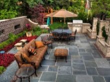 Подреждането на платформа зад отдалечения край на къщата, покриваща цялата ширина на парцела, е отлично решение за създаване на зона за отдих с барбекю., що се отнася до околните пространства, тогава: