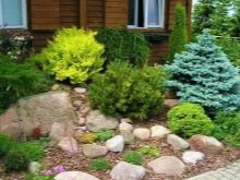 Алпийска пързалка трябва да бъде поставена директно на входа на къщата. Тук също трябва да бъде разположена зона за отдих. Наклонът може да бъде украсен чрез засаждане на най -ярките цветове върху него. Цветната градина може да бъде оградена от останалата територия с ограда от вълна, направена със собствените ви ръце, или миниатюрна тухлена ограда.