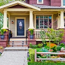 Ако се даде предпочитание на стандартната симетрия, тогава къщата става център на композицията, а два средни храста са засадени отстрани на входа. Входната зона в такава ситуация може да бъде визуално отворена. Това не означава пълното отсъствие на оградата., но за него трябва да се използват ажурни огради и малки живи плетове.
